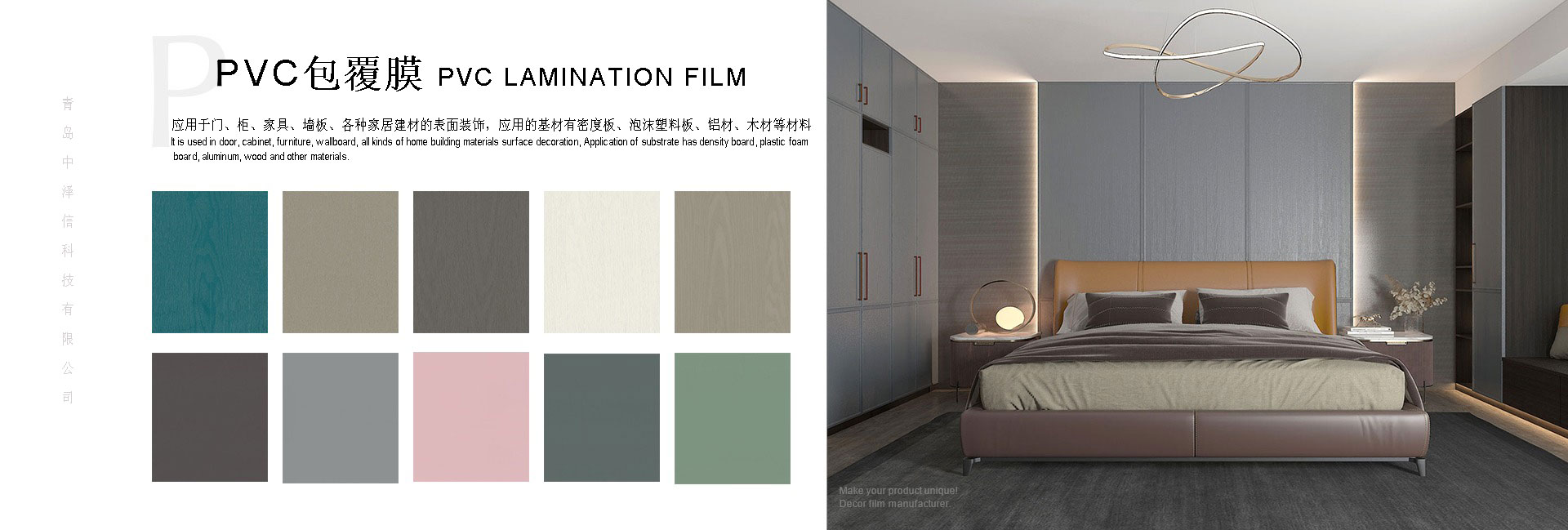 應(yīng)用于門、柜、家具、墻板、各種家居建材的表面裝飾,應(yīng)用的基材有密度板、泡沫塑料板、鋁材、木材等材料。